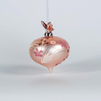 GLASS BALL, DUSTY PINK WITH PORCELAIN BUTTERFLY, 10cm, PCS 1