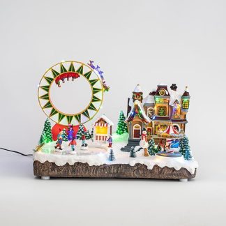 SNOWY VILLAGE, 18 LED, WITH ADAPTOR, WITH MOVEMENT, 27x27x29cm
