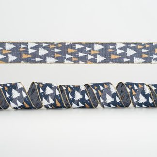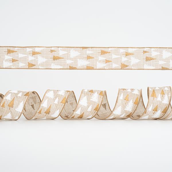 BEIGE RIBBON, WITH WHITE AND GOLD TREES, 6,35cm, 10Y