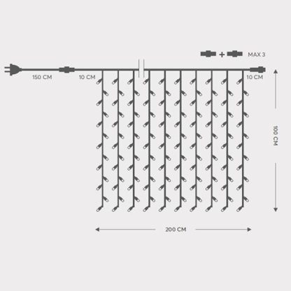 CURTAIN, 200 LED 5mm WITH CUPS, 230V, CONNECTOR UNTIL 5, GREEN RUBBER WIRE, WARM WHITE LED (H100 x W200cm, 20 LINES x 10 LED), LEAD WIRE 1.5m, IP65