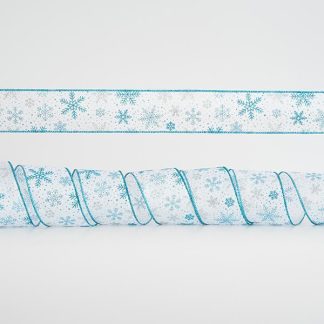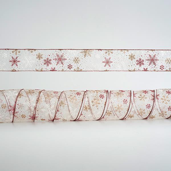 TRANSPARENT RIBBON, WITH SILVER AND PINK SNOWFLAKES, 6,35cm, 10Y