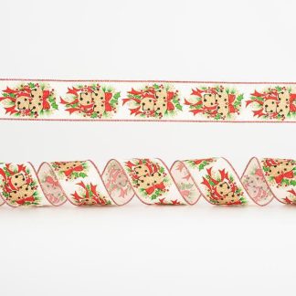 RED RIBBON, WITH RED GLITTER FLOWERS, 6,35cm, 10Y