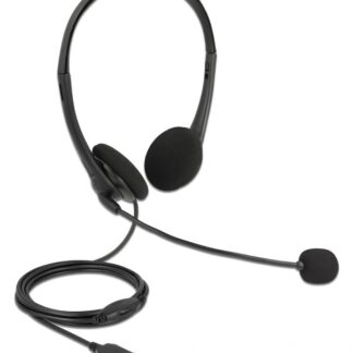 DELOCK headphones με μικρόφωνο 27179, stereo, USB, volume control, μαύρα