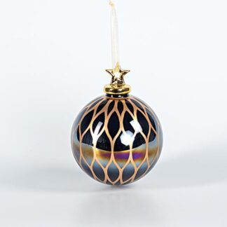 ΓΥΑΛΙΝΗ ΜΠΑΛΑ, ΙΡΙΔΙΖΟΥΣΑ ΜΑΥΡΗ ΜΕ ΠΟΡΣΕΛΑΝΙΝΟ ΑΣΤΕΡΙ ΚΑΙ ΧΡΥΣΑ ΣΧΕΔΙΑ, 1ΤΜΧ, 10cm