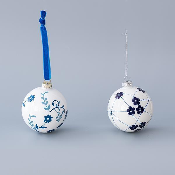 ΓΥΑΛΙΝΗ ΜΠΑΛΑ, ΛΕΥΚΗ ΜΕ ΜΠΛΕ ΛΟΥΛΟΥΔΙΑ, 2 ΣΧΕΔΙΑ, ΣΕΤ 4ΤΜΧ, 8cm