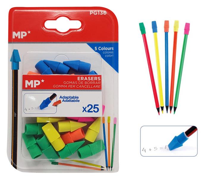 MP σετ γόμα καπάκι για μολύβι PG136, διάφορα χρώματα, 25τμχ
